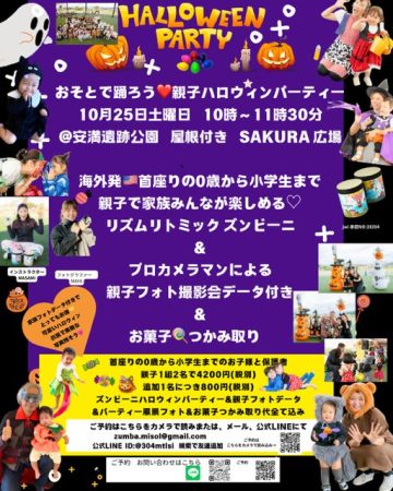 2025年10月25日(土)「お外で遊ぼう!HALLOWEEN PARTY!親子で楽しめるリズムリトミックハロウィンパーティーズンビーニMASAMI&親子フォト撮影」
