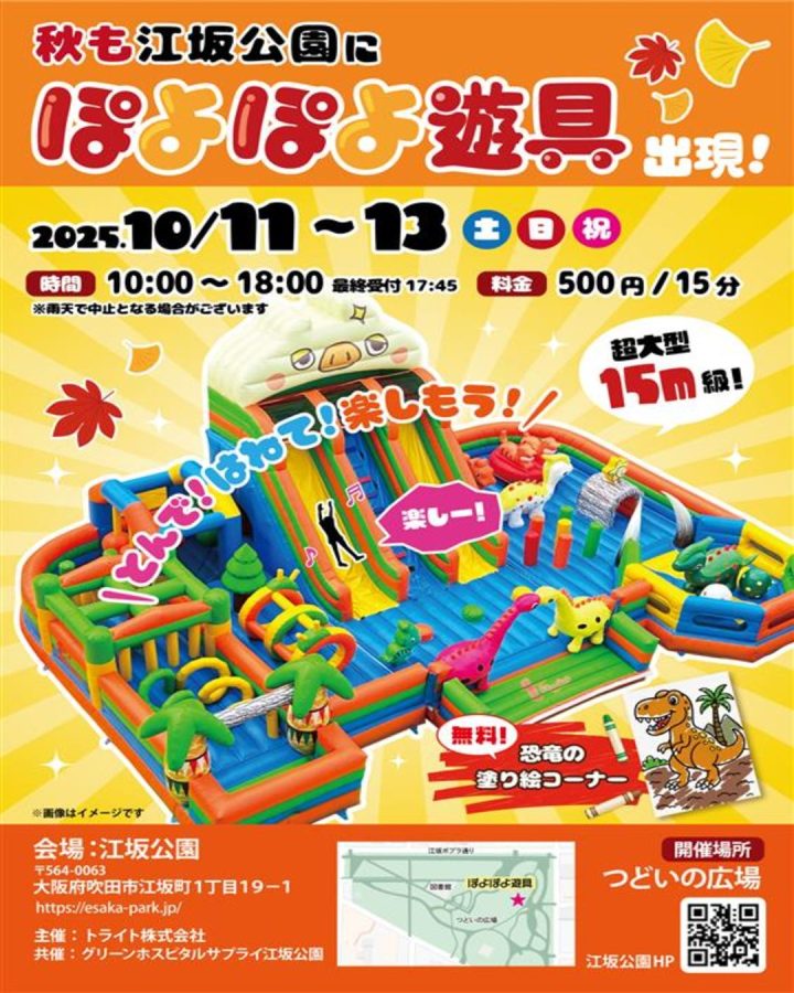 10月11日(土)~13日(月・祝)の3日間、江坂公園にて「ぽよぽよ遊具」が設置されます!!🐷