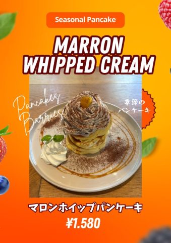 ふわふわのパンケーキに、やさしい甘さのマロンホイップがたっぷり!🌰