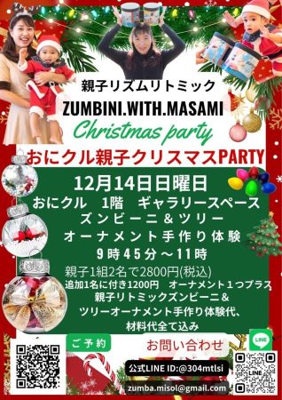 親子リズムリトミック zumbini.with.MASAMI おにクル親子クリスマスPARTYが開催されます。