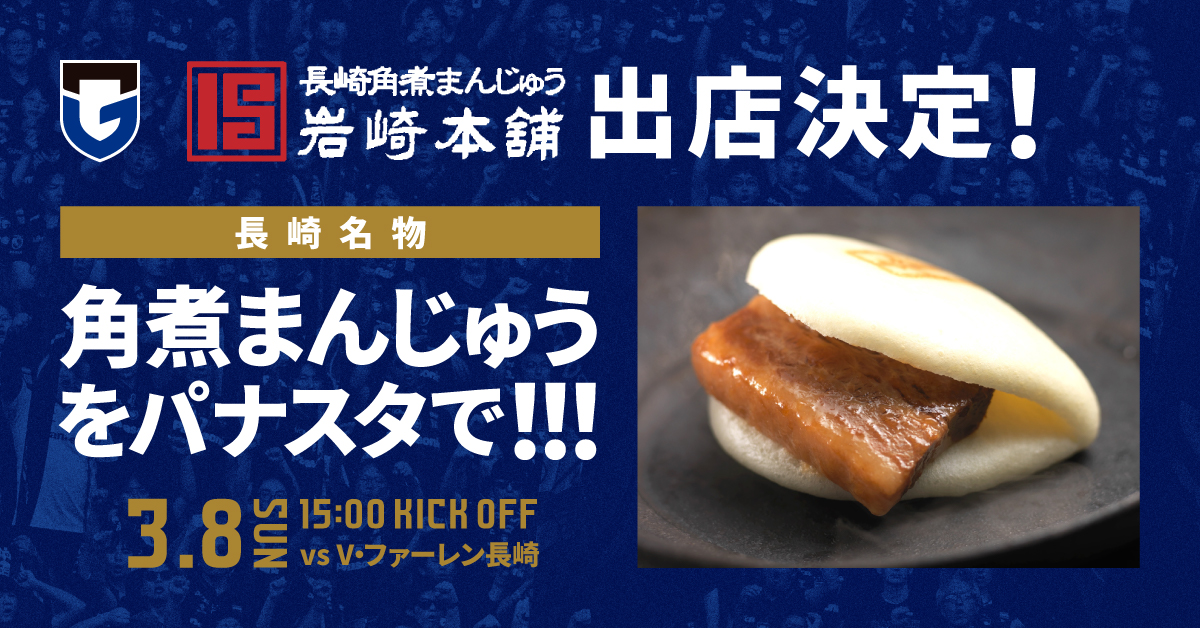 さらに、長崎の人気店 岩崎本舗 の出店が決定しました。長年愛され続ける看板商品の「角煮まんじゅう」を、スタジアムで味わえる特別な機会です!
