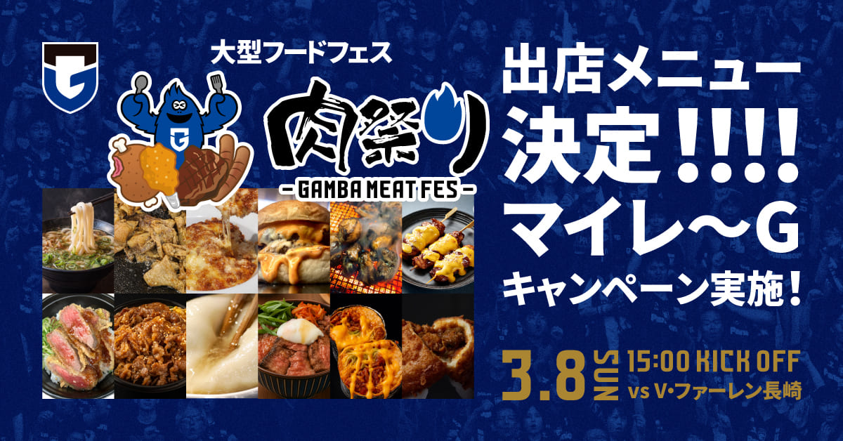 3/8(日)明治安田J1百年構想リーグ 第5節 V・ファーレン長崎戦では、パナソニックスタジアム吹田 場外バックスタンド側 青黒横丁で「肉祭り」を開催します。