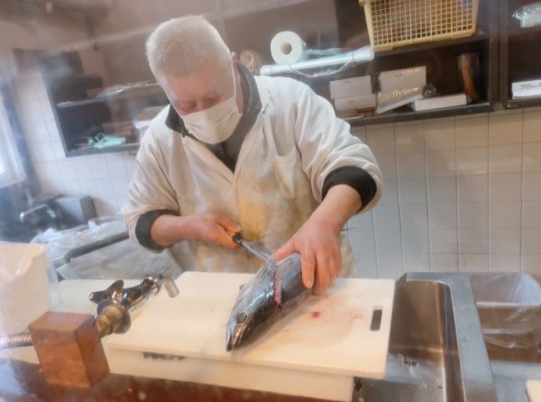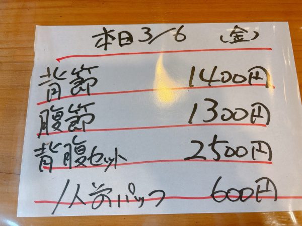 「毎日茨木市の中央卸売市場に行って、新鮮な生鰹を仕入れています。だからその日に仕入れた鰹の大きさや脂ののり方が違うので、値段も毎日変動するんですよ」と、店主の大日さんが優しそうな笑顔で話してくれました。