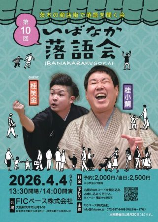 【茨木市】商店街で気軽に楽しむ“笑いのひととき。4月4日(土)、FIC ベース 交流スペース で 「いばなか落語会」が開催!
