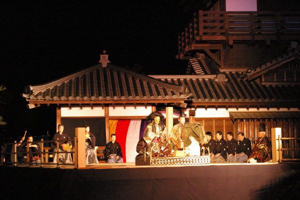 夕暮れのなか行われる能と狂言の公演は、まさに非日常。伝統芸能の世界に浸る貴重な機会です。