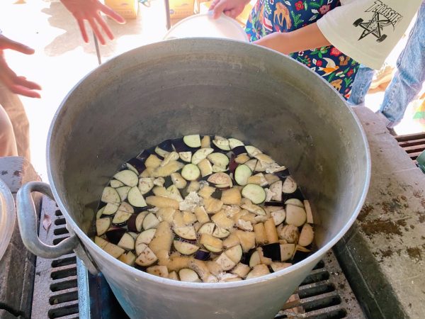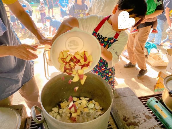 大きなずんどう鍋に野菜を入れるよー!お味噌汁づくり、息子も最後まで夢中!楽しくやりきった素晴らしい体験になりました