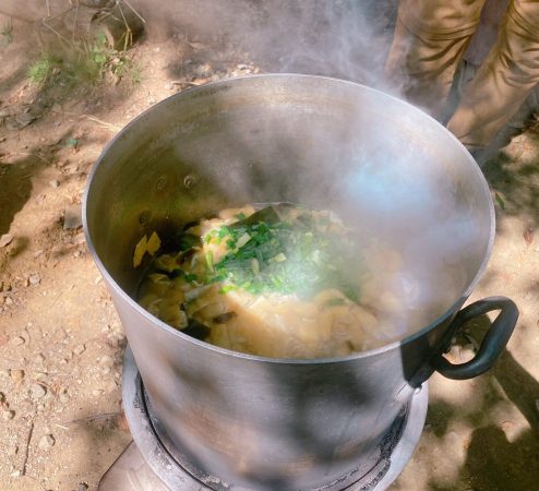 子どもたちが力を合わせてつくった愛情いっぱいの手作りお味噌汁♡畑で採れたさつまいもやねぎ、なすを入れて作ったお味噌汁は、野菜の甘みが広がる格別の味でした
