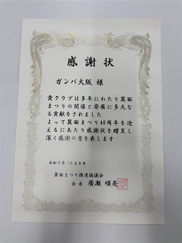 今年もガンバ大阪の出演にご協力いただきました、箕面まつり推進協議会をはじめ、ガンバ大阪箕面後援会の皆様、関係者の皆様ありがとうございました。