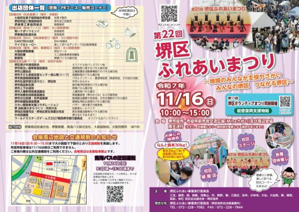 今週日曜日、『地域のみんなが主役やさかい みんなの堺区 つながる堺区』というテーマのイベントが開催予定!