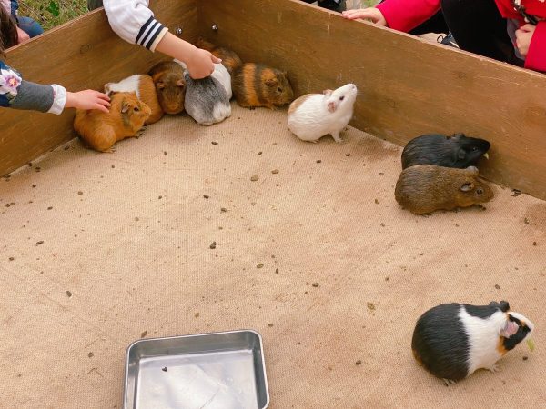 子どもたちが集まって、モルモット♡たちを優しくなでなで〜初めてのふれあいにもぴったりですよー