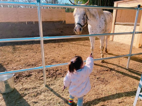 2歳の娘も最初は少し緊張していましたが、穏やかなお馬さんの雰囲気が伝わったのか、