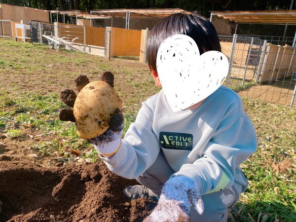 ふわふわの土を掘ると、コロコロ…じゃがいもが出てきた!