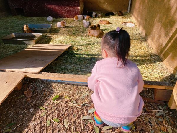 モルモット、ウサギ、ニワトリ、カピバラのエリアを自由に見学