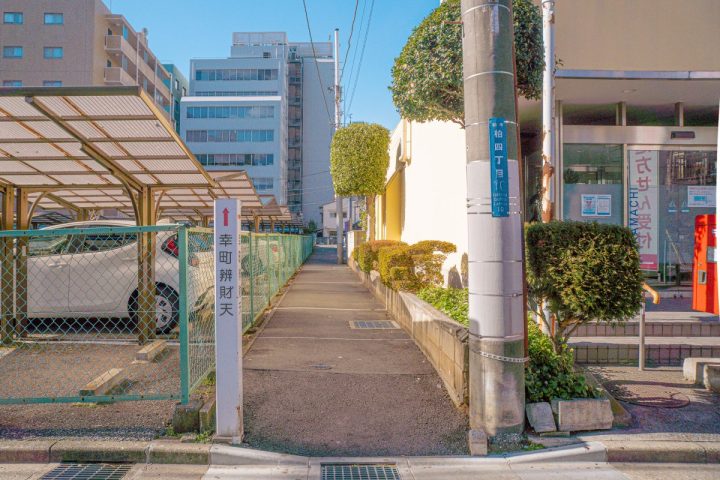 細い道の入口に「幸町弁財天」の看板があります。