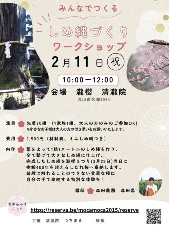 瀧櫻まつりで奉納・祈願される、特別なしめ縄ワークショップ!自分の手でつくり、祈りを託す——心に残る体験を(画像はつちまるより提供)