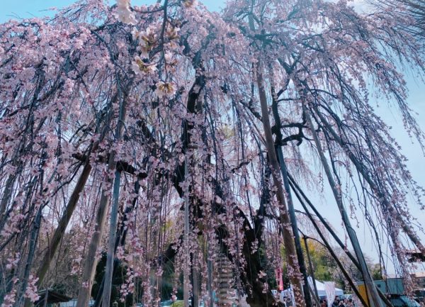 境内に咲き誇るしだれ桜を見上げた、あの日の光景は今でも心に残っています