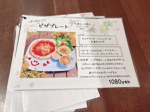 ピザはマルゲリータ、ジェノベーゼ、日替わりピザの3種類から選択可能です。