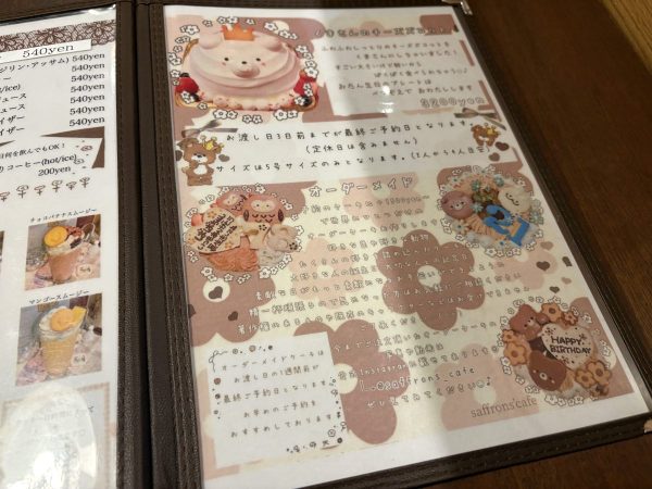 メニューの最後にオーダーケーキについての記載がありました。