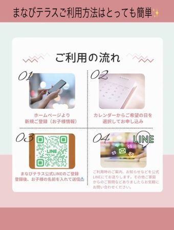 「〇〇(お子様の名前)、利用登録完了」と送信すると、各テラスの利用申込みフォームが届きます