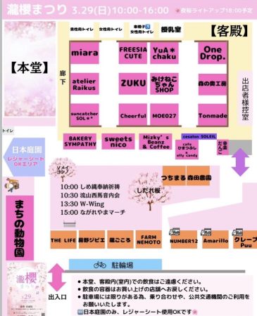 当日はぜひ事前に会場マップをチェックして、のんびりと瀧櫻まつりを満喫してくださいね♩