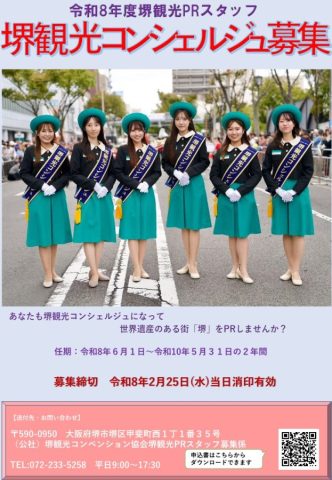 市内外へ向けて堺の魅力を発信し、誘客促進に取り組む堺観光PRスタッフ「堺観光コンシェルジュ」の募集が始まっています!